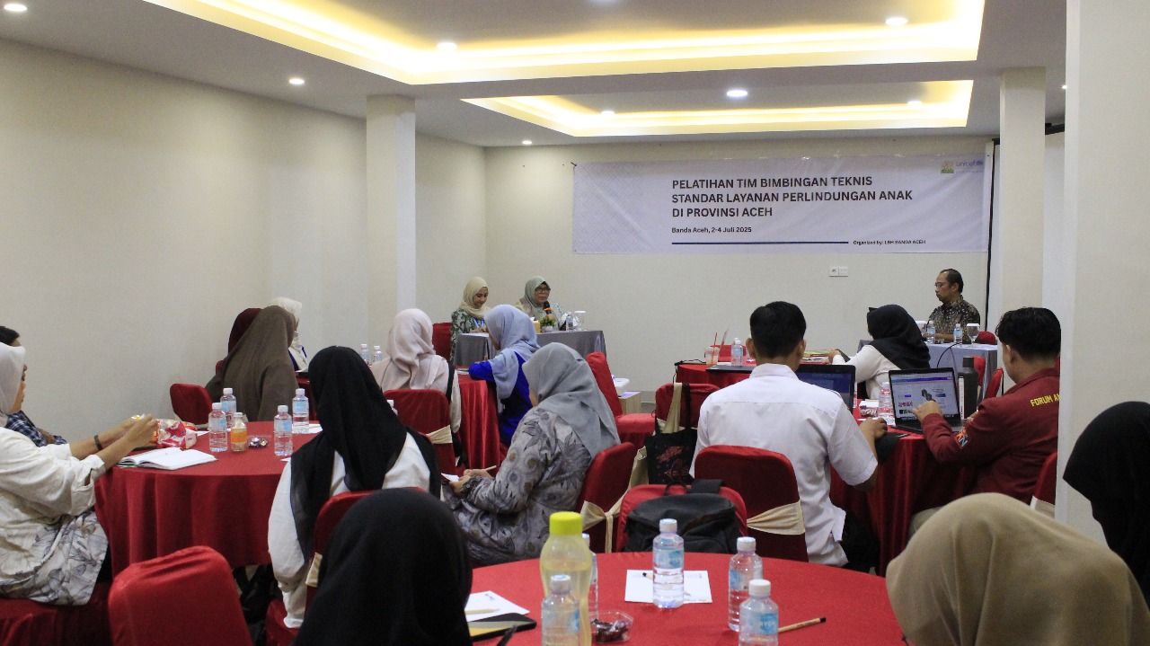 SAGOE TV | BANDA ACEH – Pemerintah Aceh melalui Dinas Pemberdayaan Perempuan dan Perlindungan Anak (DP3A) dan LBH Banda Aceh bekerja sama dengan UNICEF menggelar Pelatihan Penguatan Tim Technical Assistance (TA) Standar Layanan Perlindungan Anak. Kegiatan yang digelar selama tiga hari, 2 – 4 Juli 2025 di salah satu hotel di Kota Banda Aceh ini menjadi langkah strategis dalam memperkuat sistem perlindungan anak di seluruh wilayah Aceh.