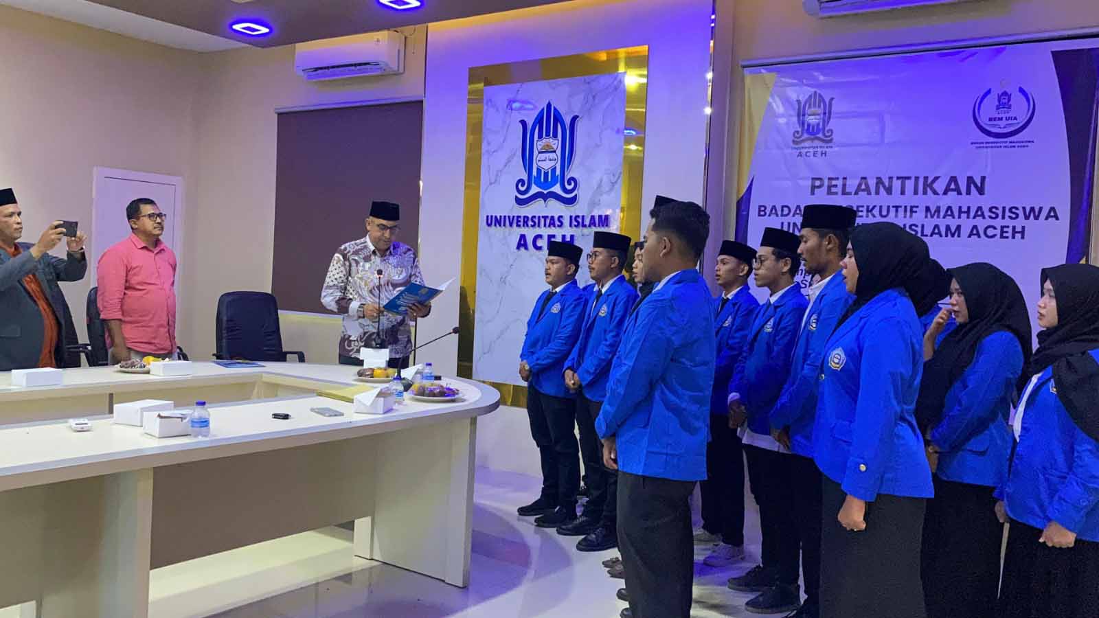 Rektor Universitas Islam Aceh (UIA) Dr Nazaruddin secara resmi melantik pengurus Badan Eksekutif Mahasiswa (BEM) UIA masa bakti 2025-2026. Foto: dok. UIA