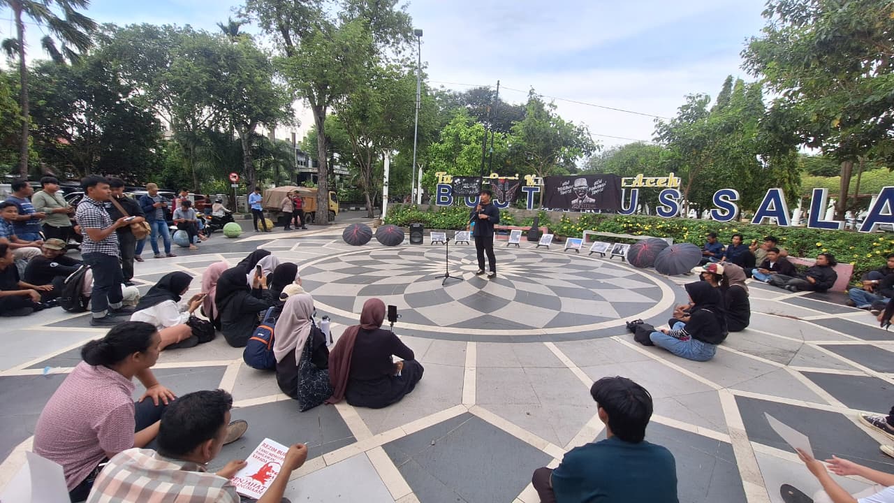 SAGOE TV | BANDA ACEH – Koalisi Masyarakat Sipil Aceh menggelar aksi damai di Taman Bustanussalatin, Banda Aceh, Rabu (12/11/2025), menolak keputusan Presiden Prabowo Subianto yang menetapkan Soeharto sebagai Pahlawan Nasional yang telah dianugerahkan pada Senin (10/11) atau bertepatan dengan Hari Pahlawan 2025.