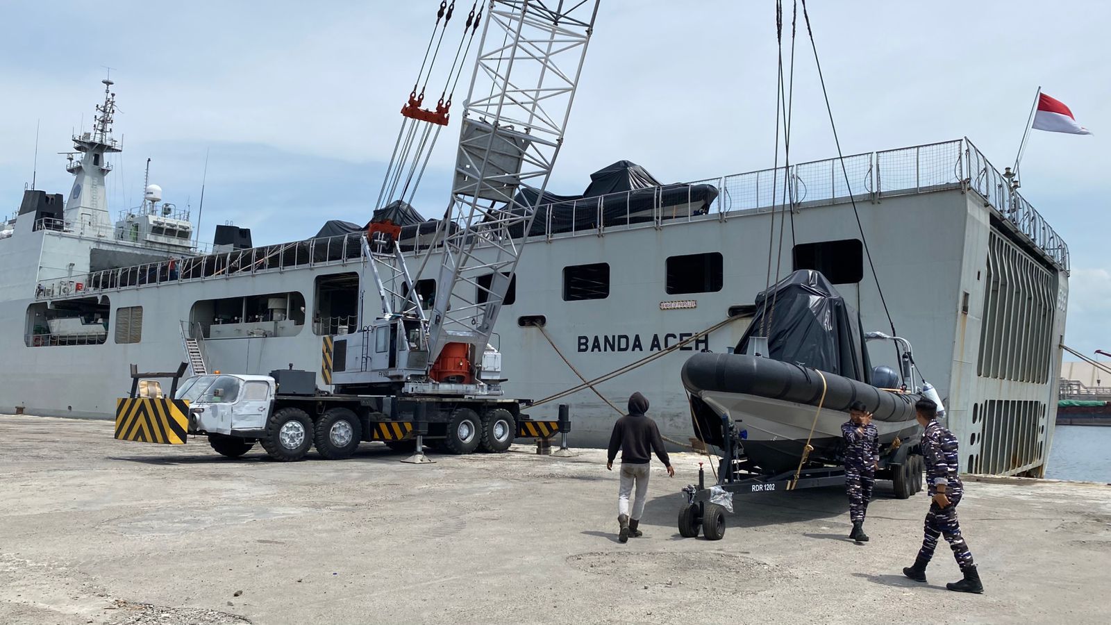 Pangkalan TNI AL (Lanal) Lhokseumawe resmi menerima tambahan alutsista berupa satu unit speedboat yang diantar langsung oleh KRI Banda Aceh-593 saat sandar di Pelabuhan Krueng Geukueh. Foto: Lanal Lhokseumawe