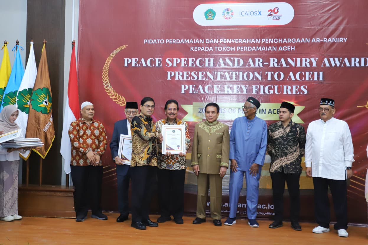 SAGOE TV | BANDA ACEH – Universitas Islam Negeri (UIN) Ar-Raniry Banda Aceh memberikan penghargaan kepada sejumlah tokoh perdamaian Aceh dalam rangka memperingati 20 tahun penandatanganan Memorandum of Understanding (MoU) Helsinki antara Pemerintah Indonesia dan Gerakan Aceh Merdeka (GAM) pada 15 Agustus 2005. Acara digelar di Museum UIN Ar-Raniry, Kamis (14/8/2025).