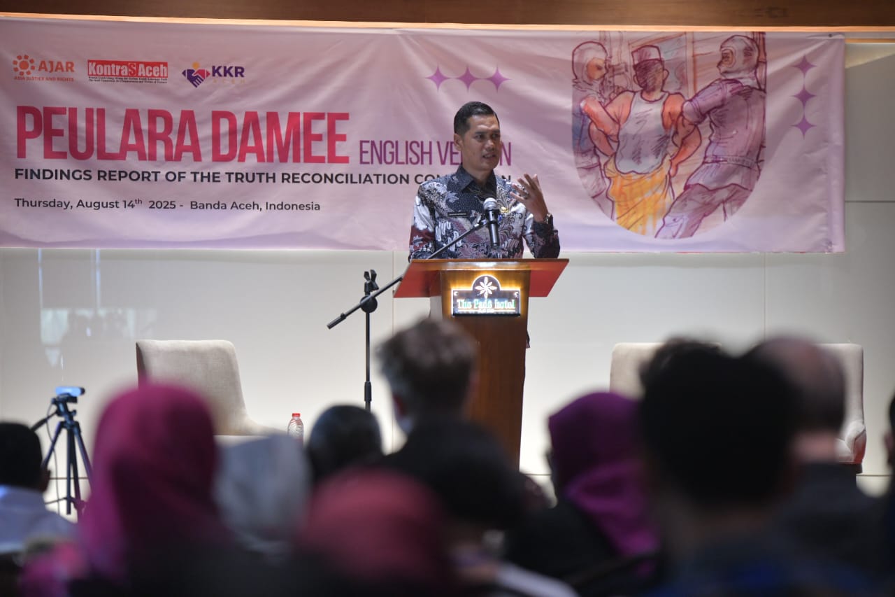Peluncuran versi bahasa Inggris buku Peularaa Damee yang berlangsung di Hotel The Pade, Kamis (14/8/2025), dibuka secara resmi oleh Pelaksana Tugas Sekretaris Daerah (Plt Sekda) Aceh, M Nasir. Acara peluncuran buku yang disusun KKR Aceh bekerja sama dengan Asia Justice and Rights (AJAR) ini turut dihadiri jajaran KKR Aceh, lembaga AJAR, perwakilan komisi kebenaran dari sejumlah negara, serta perwakilan LSM lokal dan internasional di bidang kemanusiaan dan HAM.