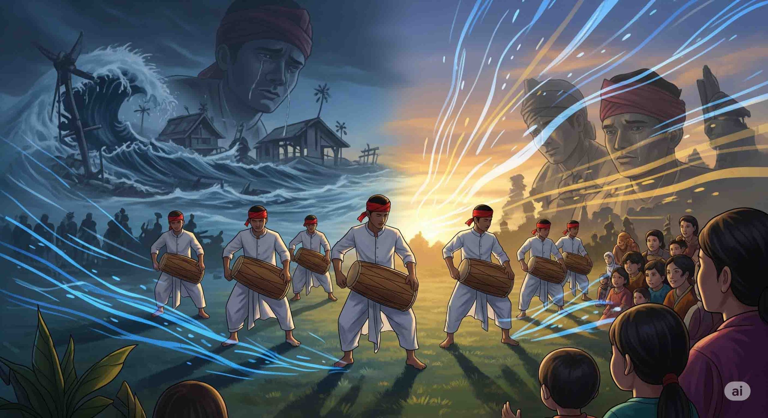 Salah satu tanda penting dari proses ini adalah munculnya kembali sanggar-sanggar seni yang selama masa konflik sempat hilang atau dibungkam. Dalam catatan budaya Aceh pasca-tsunami, kelompok-kelompok seni yang dulu berfungsi sebagai pelestari tradisi, mulai mengambil peran baru sebagai fasilitator penyembuhan sosial. Lagu-lagu ratapan seperti “Aneuk Yatim Tsunami” atau “Indonesia Menangis” tidak semata diciptakan untuk didengarkan, tetapi untuk dirasakan bersama—di panggung-panggung sederhana, di meunasah, di tenda pengungsian, bahkan di pinggir makam massal.