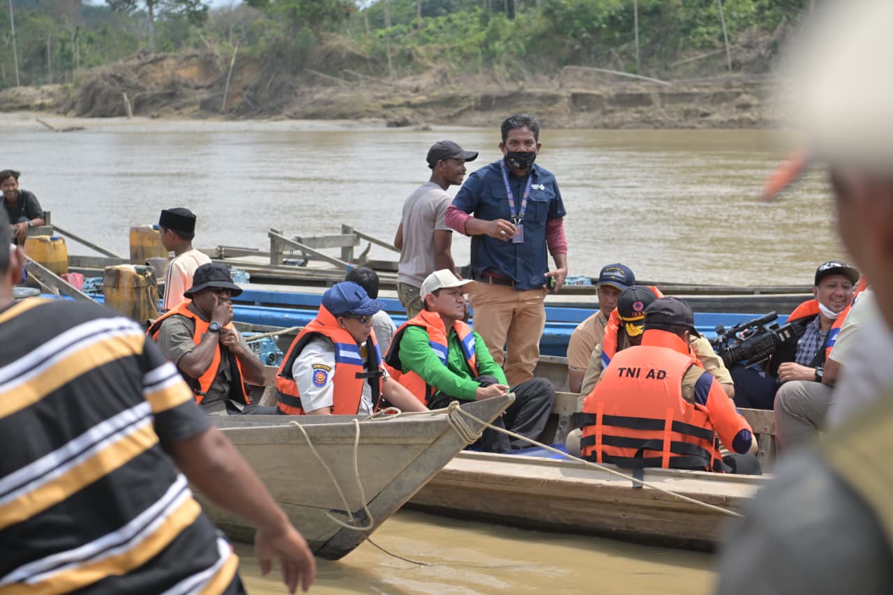 Perjalanan berlanjut ke Posko Pengungsian Desa Lubok Pusaka, Kecamatan Langkahan. Untuk mencapai lokasi yang masih terisolasi akibat bencana, rombongan harus menggunakan perahu menyusuri wilayah terdampak. Kondisi tersebut menggambarkan masih beratnya akses dan tantangan yang dihadapi masyarakat setempat.
