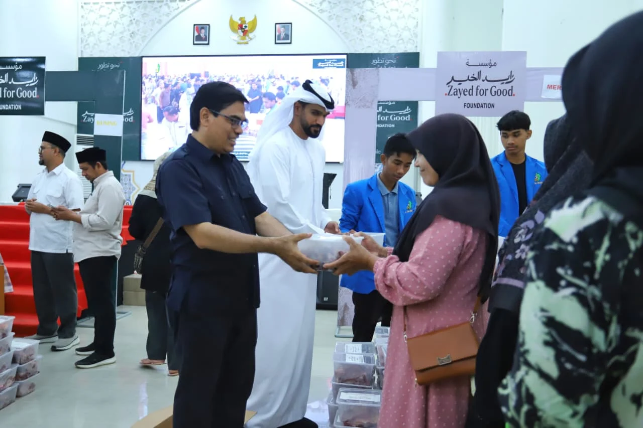 BANDA ACEH | SAGOE TV – Universitas Islam Negeri (UIN) Ar-Raniry Banda Aceh menyalurkan 1.600 paket daging meugang dan 400 paket sembako menjelang Ramadhan 1447 Hijriah. Bantuan tersebut berasal dari hadiah Pemerintah Uni Emirat Arab (UEA) melalui Zayed For Good Foundation dan didukung kerja sama dengan Masjid Raya Sheikh Zayed Solo.