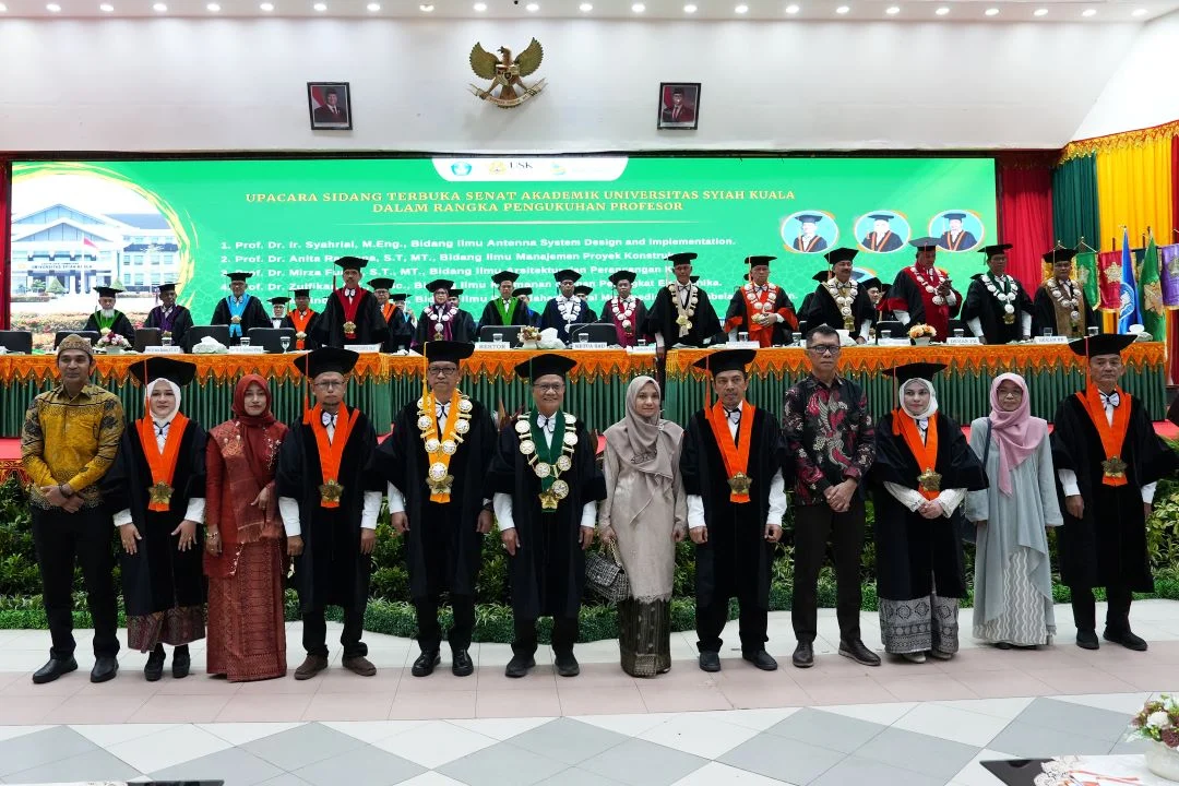 Rektor USK Prof. Mirza Tabrani, menyampaikan rasa bangga dan apresiasi atas capaian para profesor baru tersebut. Ia menegaskan, keberadaan profesor tidak hanya menjadi simbol capaian akademik tertinggi, tetapi juga sebagai penggerak utama perubahan berbasis ilmu pengetahuan yang memberikan dampak nyata bagi masyarakat.